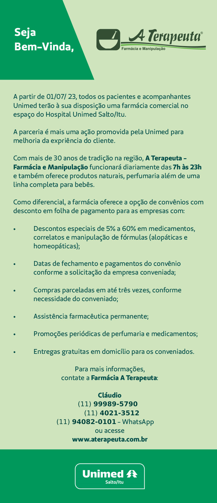 A farmácia A Terapeuta atua na área de manipulação de fórmulas e drogaria a há 31 anos, e tem como seu principal foco o cliente, nossa missão e proporcionar bem-estar aqueles que buscam uma melhor qualidade de vida ou que necessitam de medicamentos específicos para sua saúde.